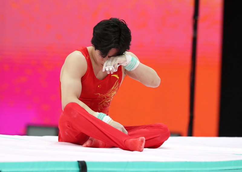 在此前一天举行的男子资格赛中,中国男队六人全部拿到决赛席位,但张博恒在单杠项目上出现失误。